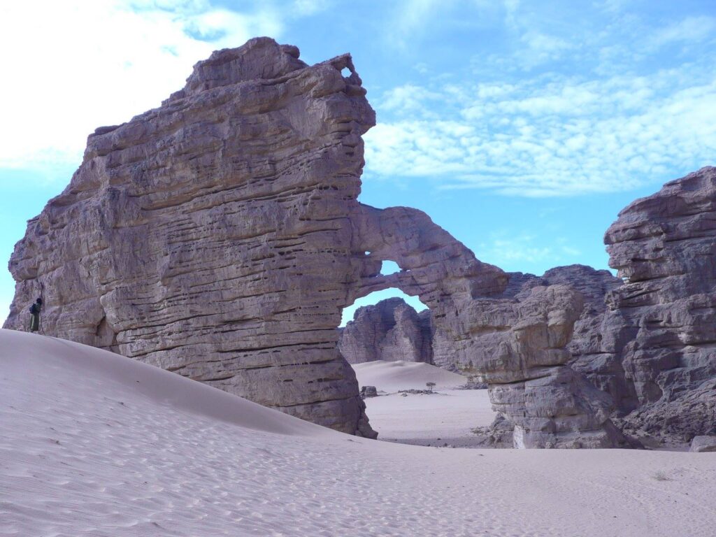 Lunch in Taghen. Cross Timghas and Tilalene, where you’ll admire breathtaking geological formations and ancient rock paintings.